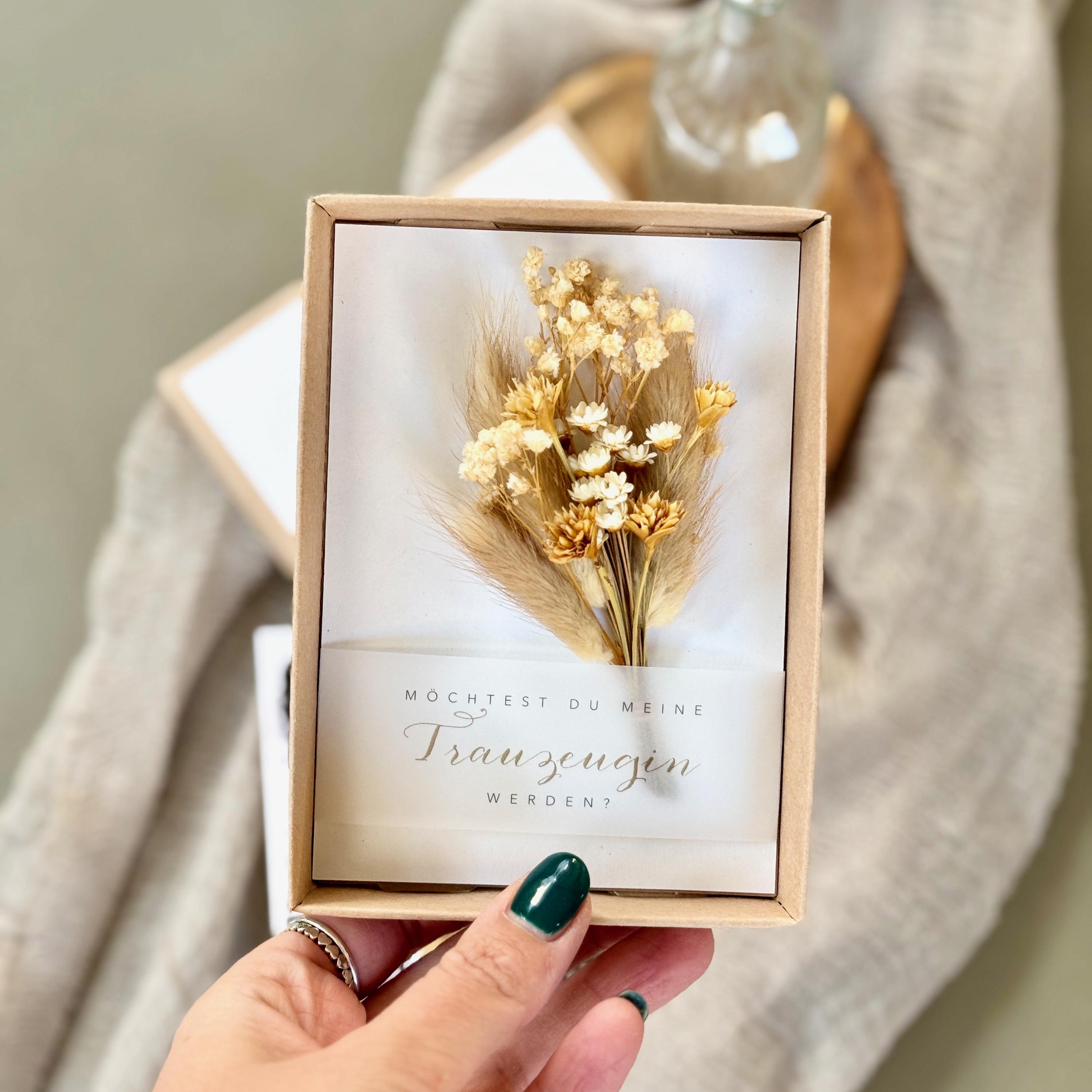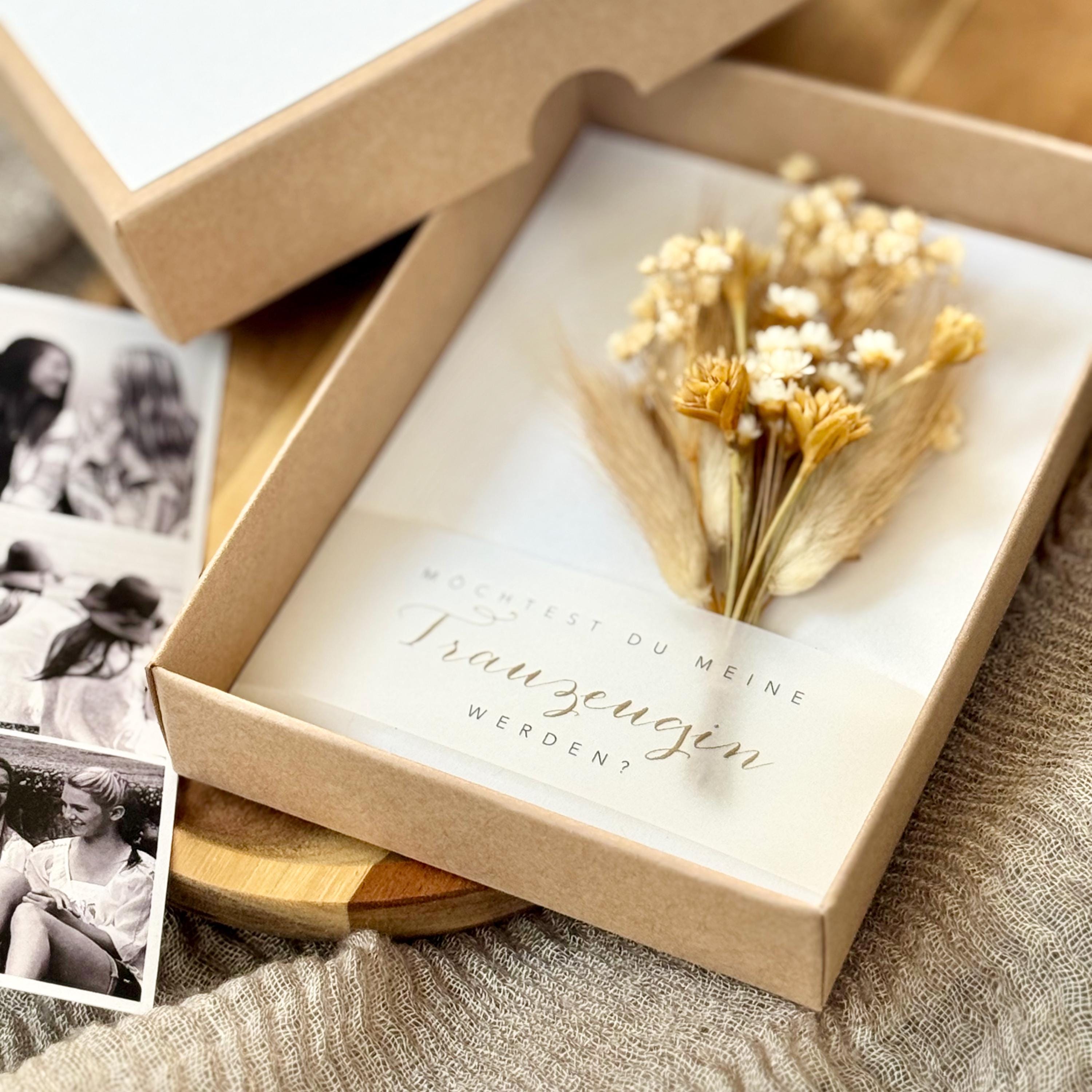 Decorated kraft paper box | Size 100 x 140 mm | Dried flower bouquet approx. 10 cm high