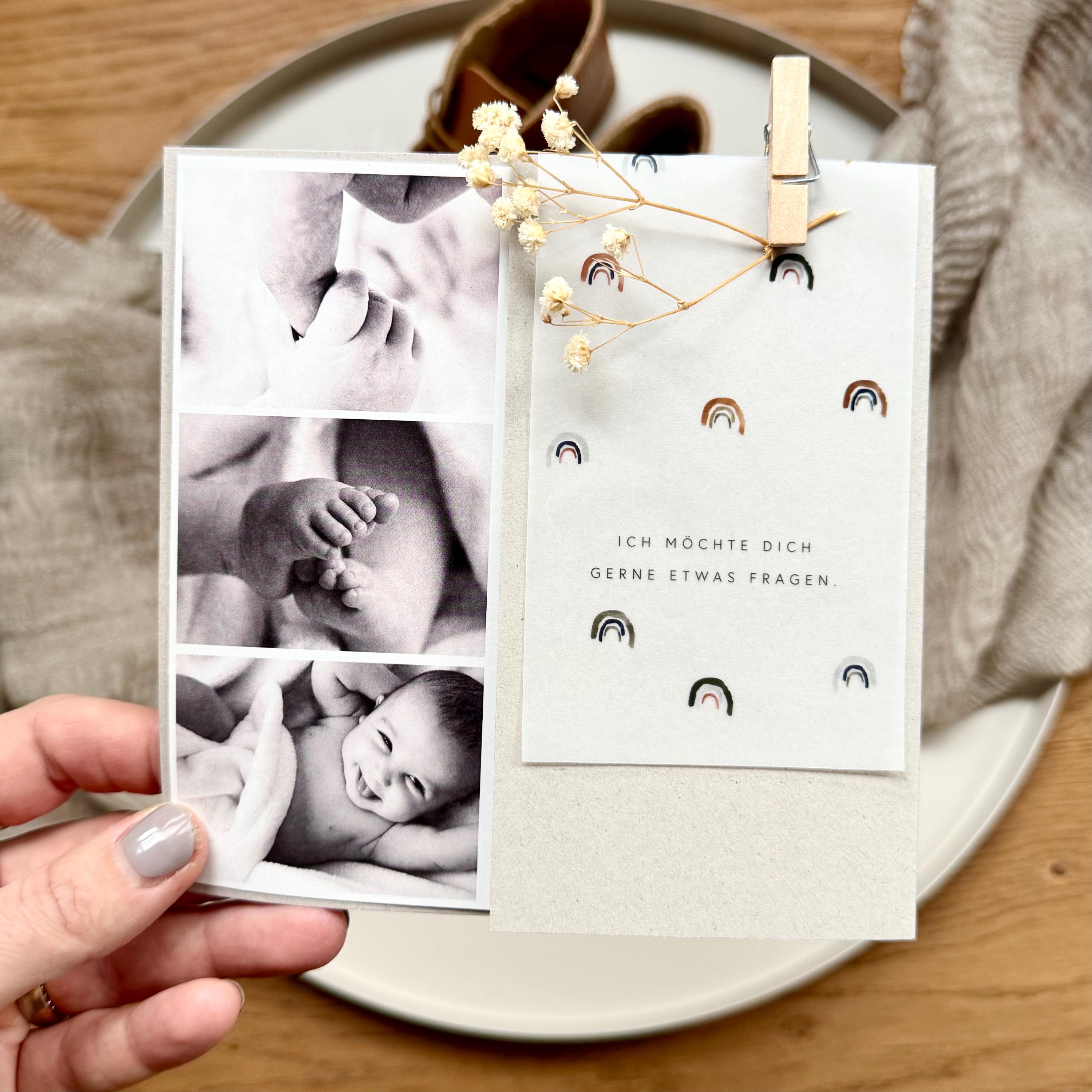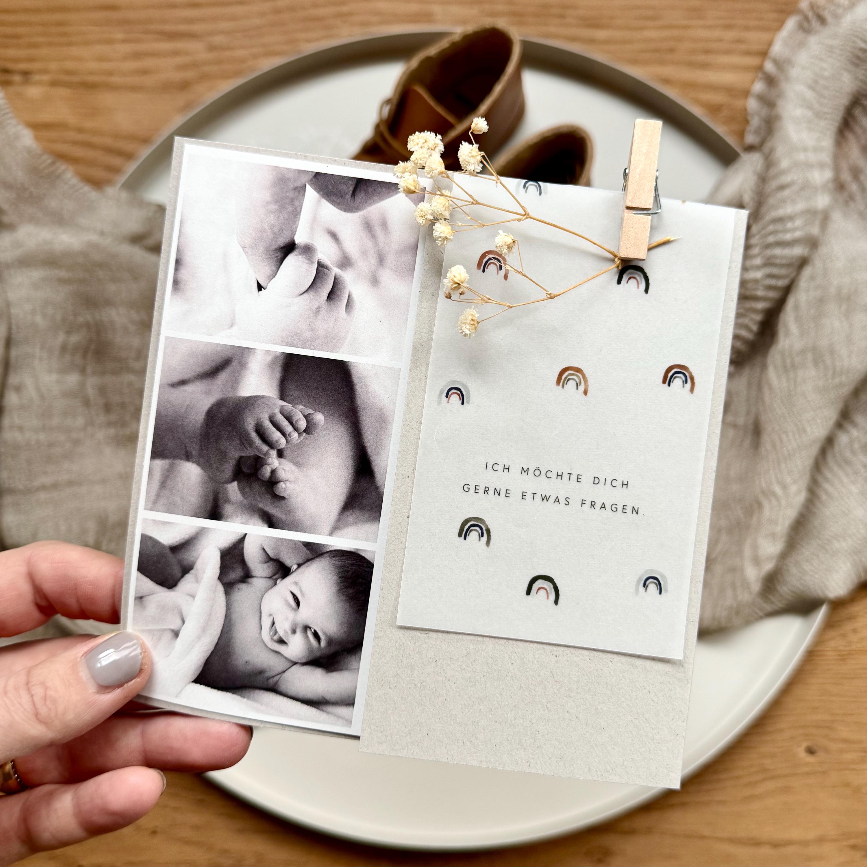 Surprise card no. 6 GODFATHER QUESTIONS with slipcase + transparent sheet + clip/dried flower