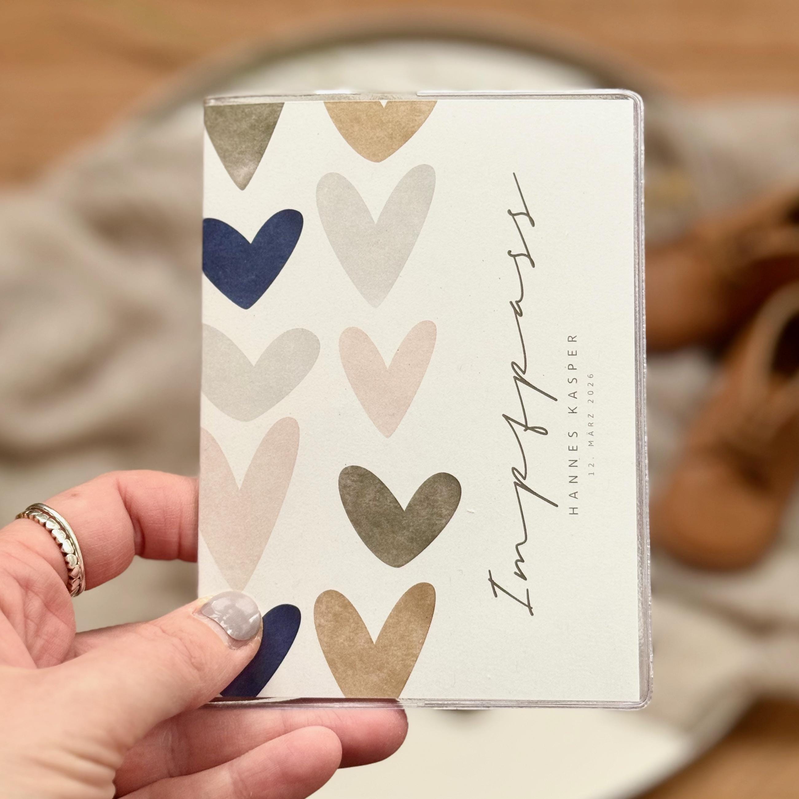 Our covers are printed on 300g recycled paper (greyish, not bright white paper) using professional digital printing and are sent to you in a cardboard envelope together with the matching soft PVC sleeves (180 µm) in transparent for the U-booklet in the format 217 x 314 mm open and for the vaccination passport in the format 137 x 200 mm.