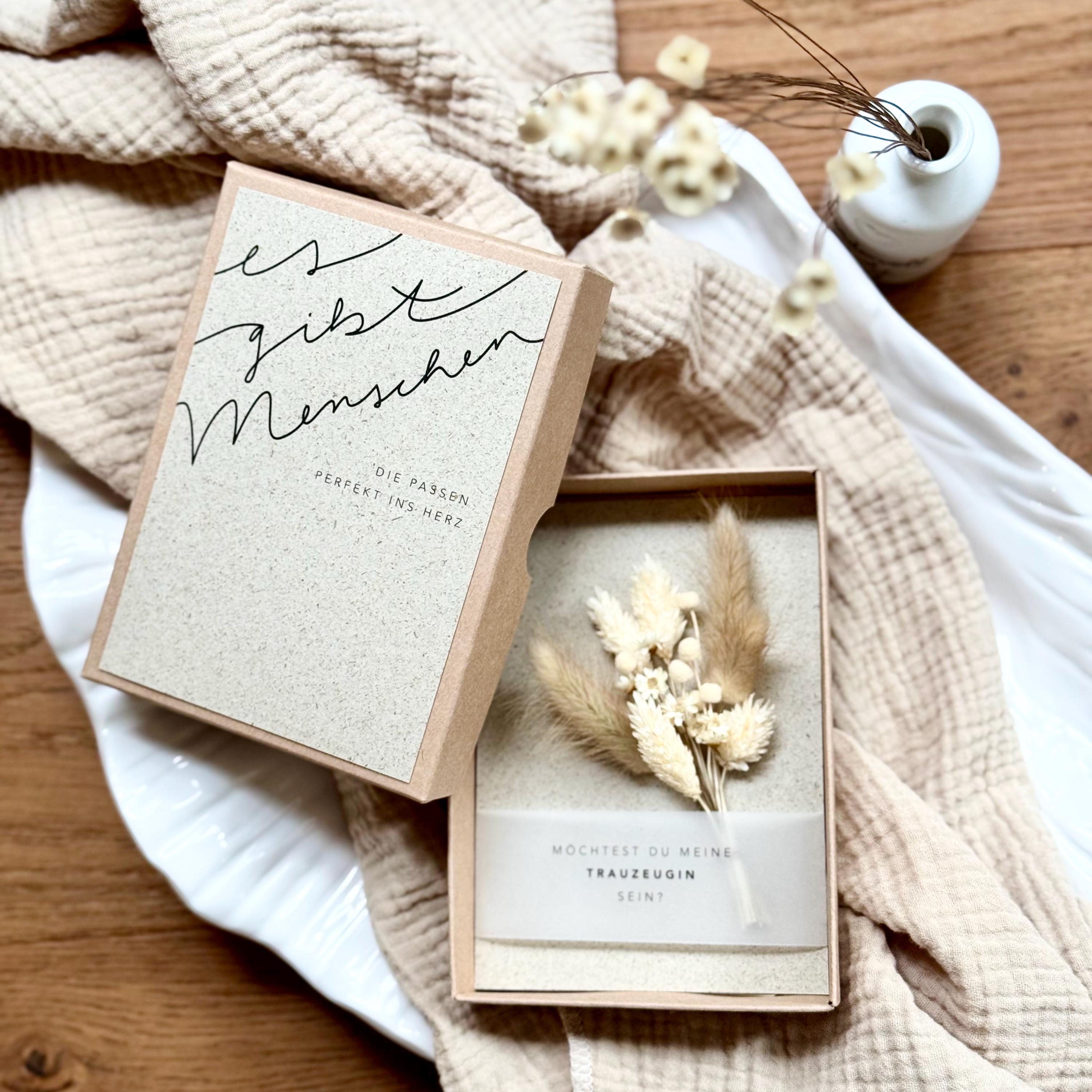 Decorated kraft paper box | Size 100 x 140 mm | Dried flower bouquet approx. 10 cm high