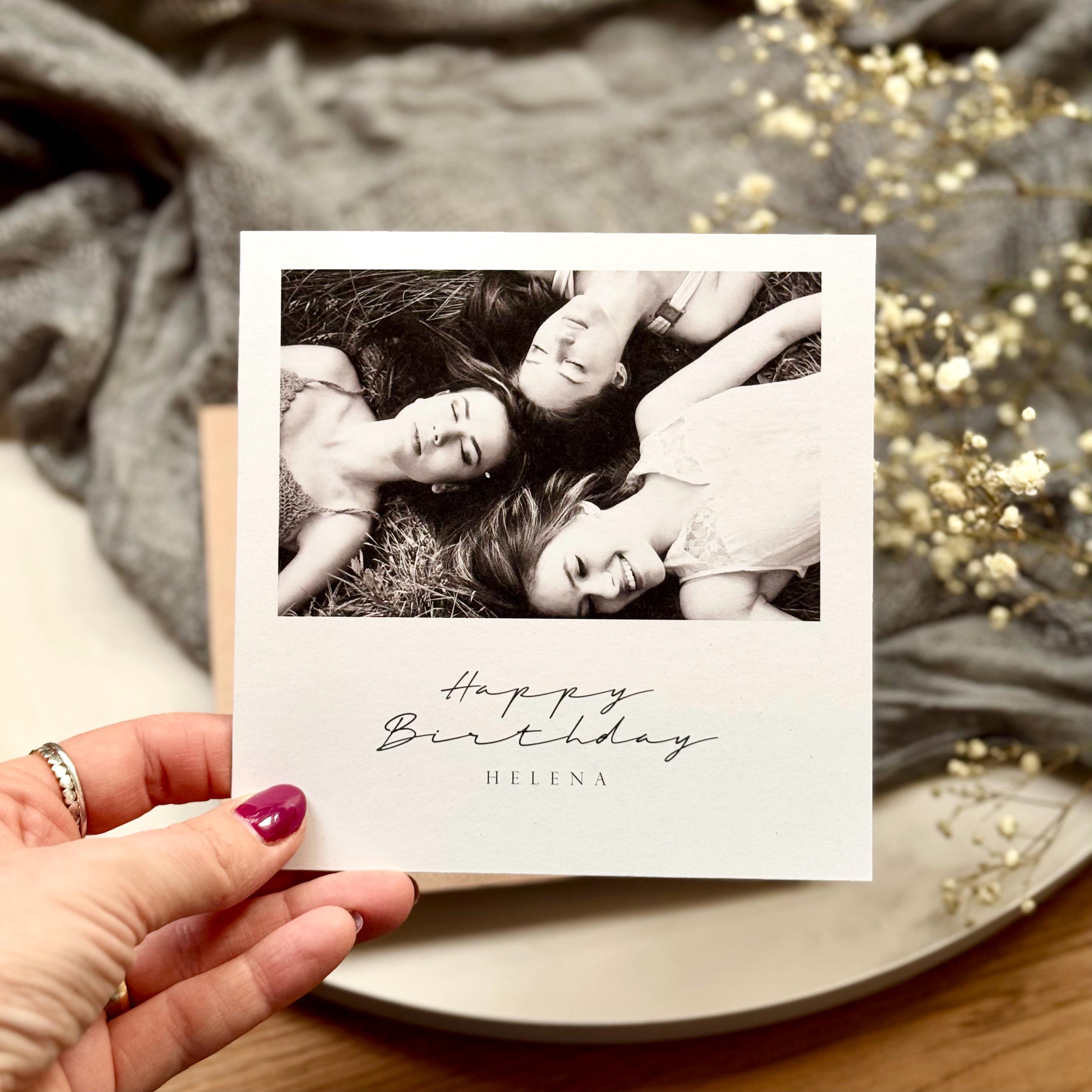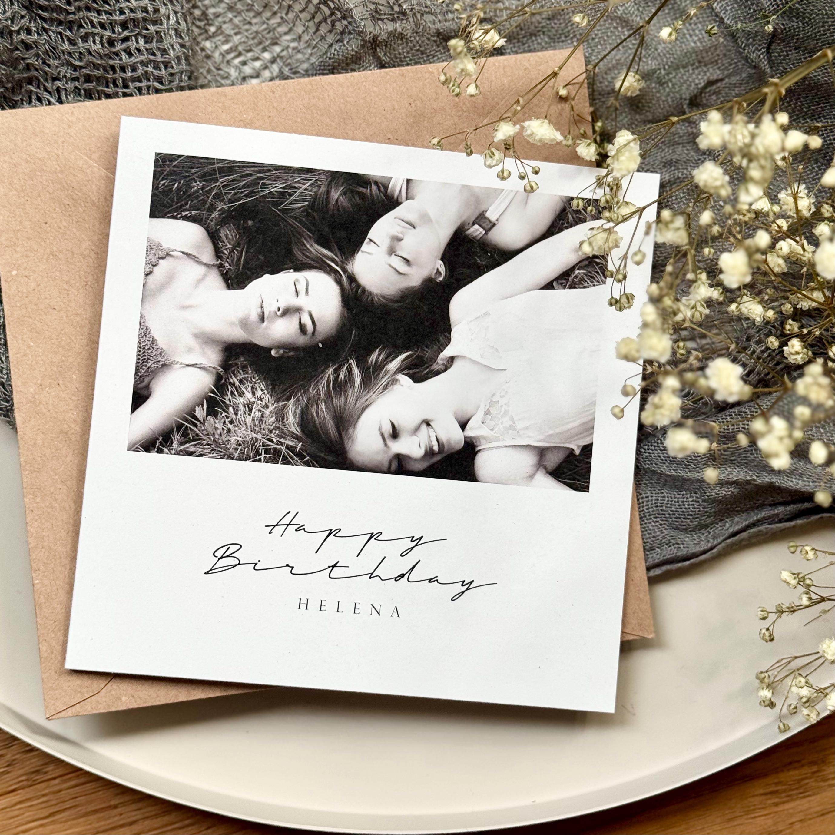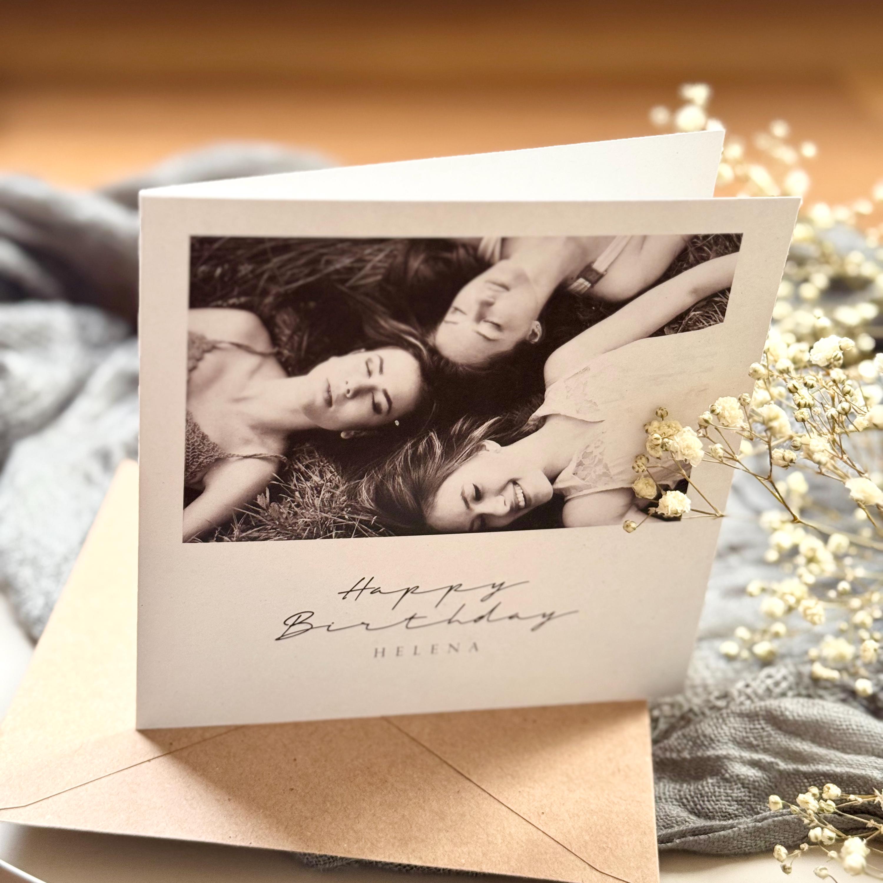 You will receive a personalized folding card in 140 x 140 mm format with a matching kraft paper envelope.