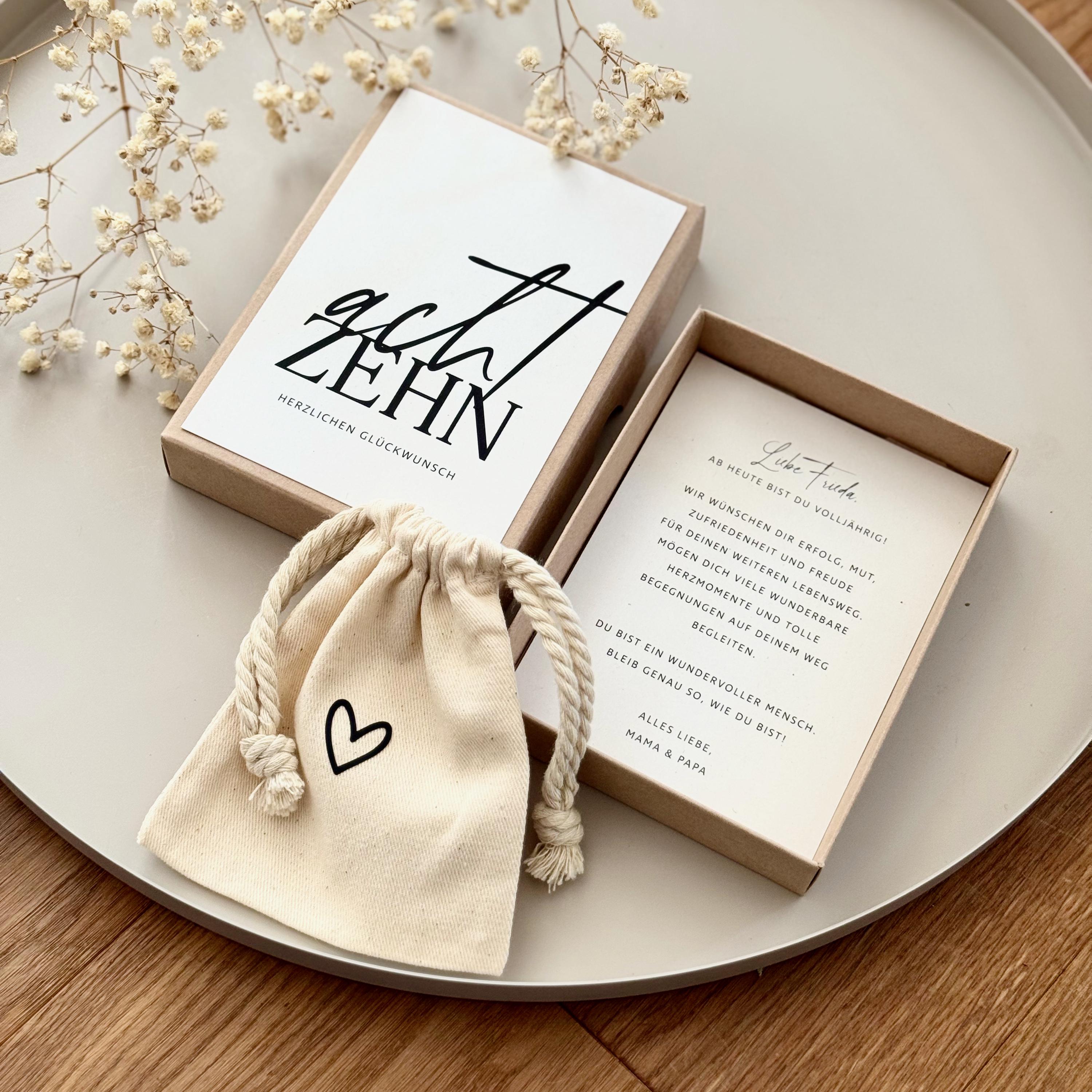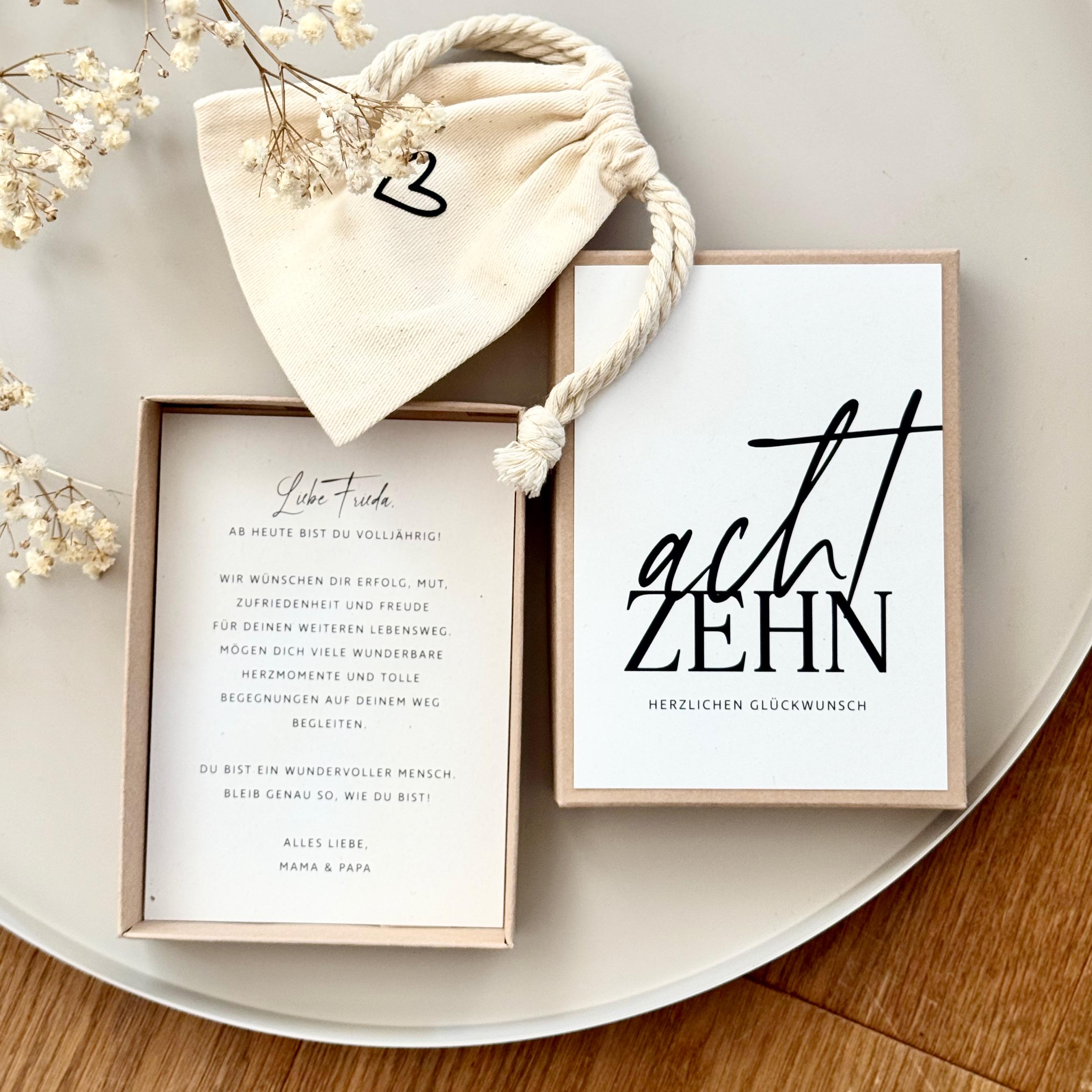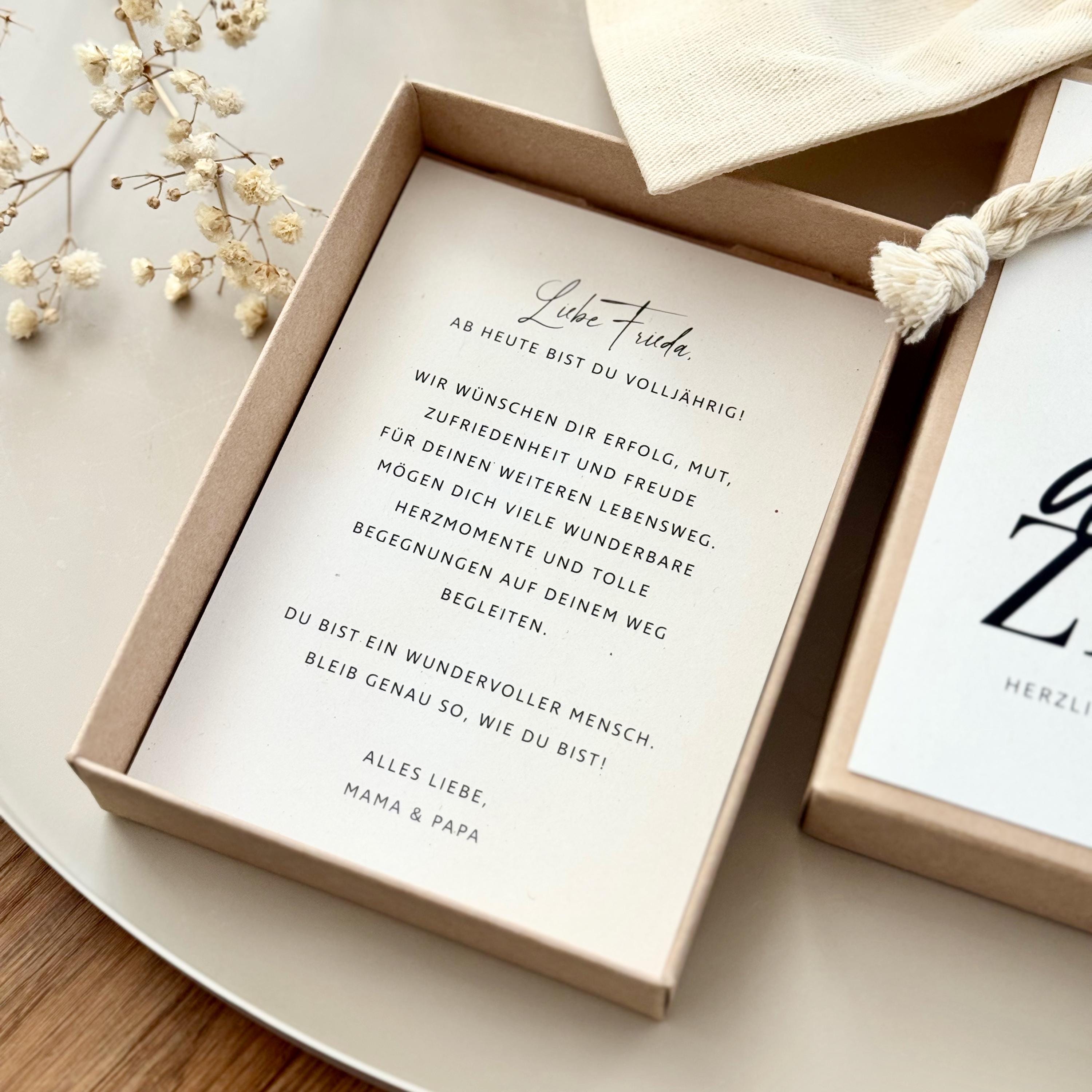 With this gift box you will receive a personalized product that is perfect as a gift for an 18th birthday if you want to give money.