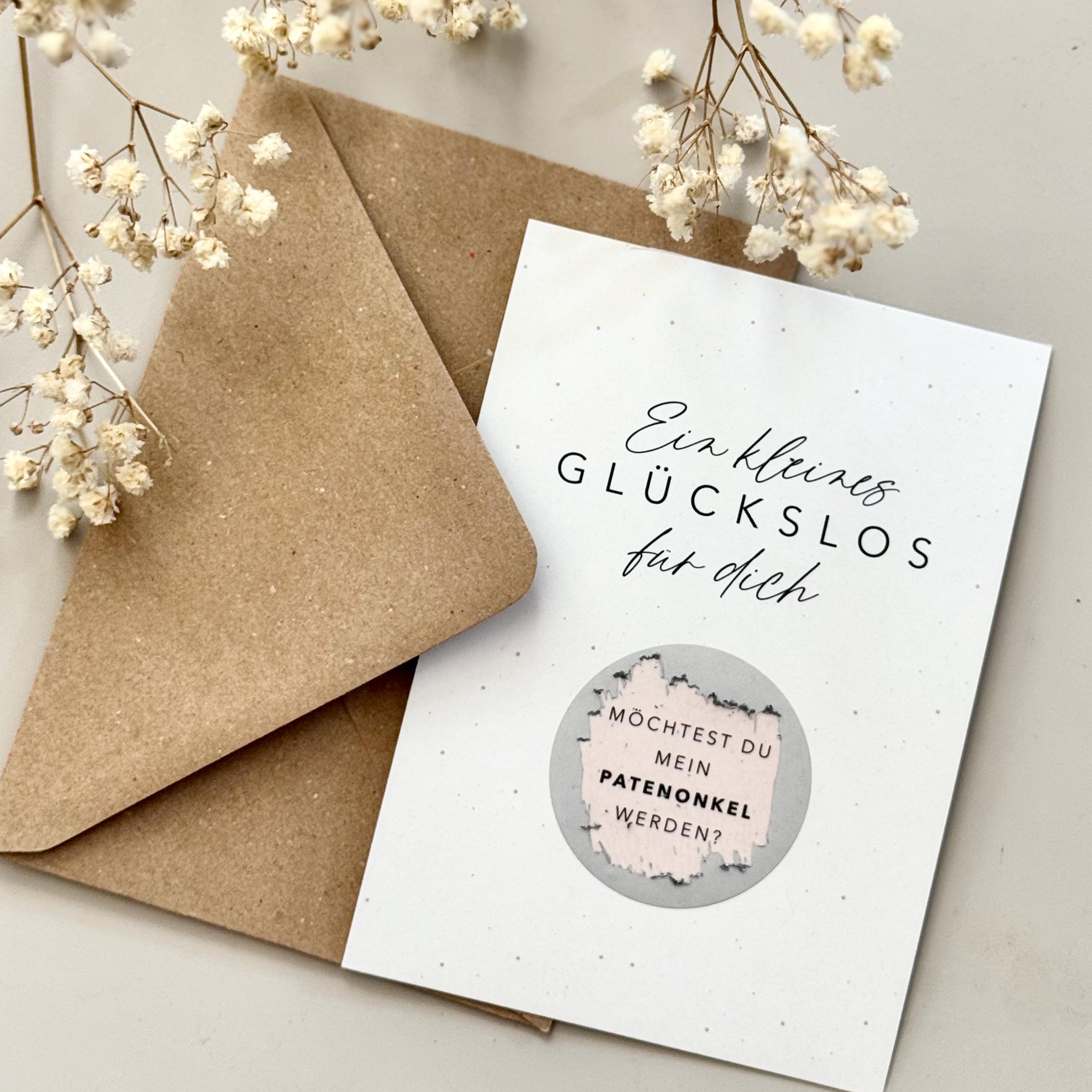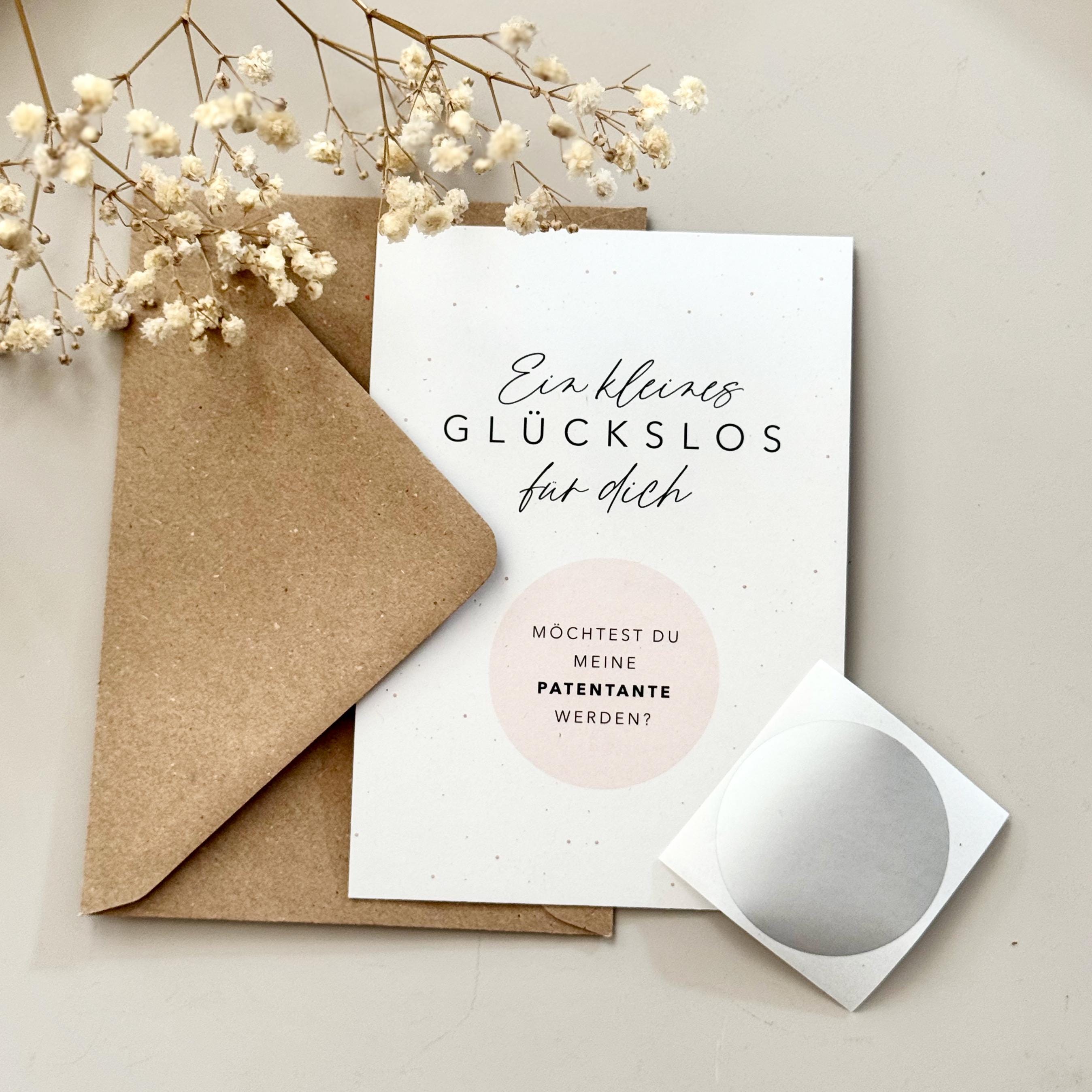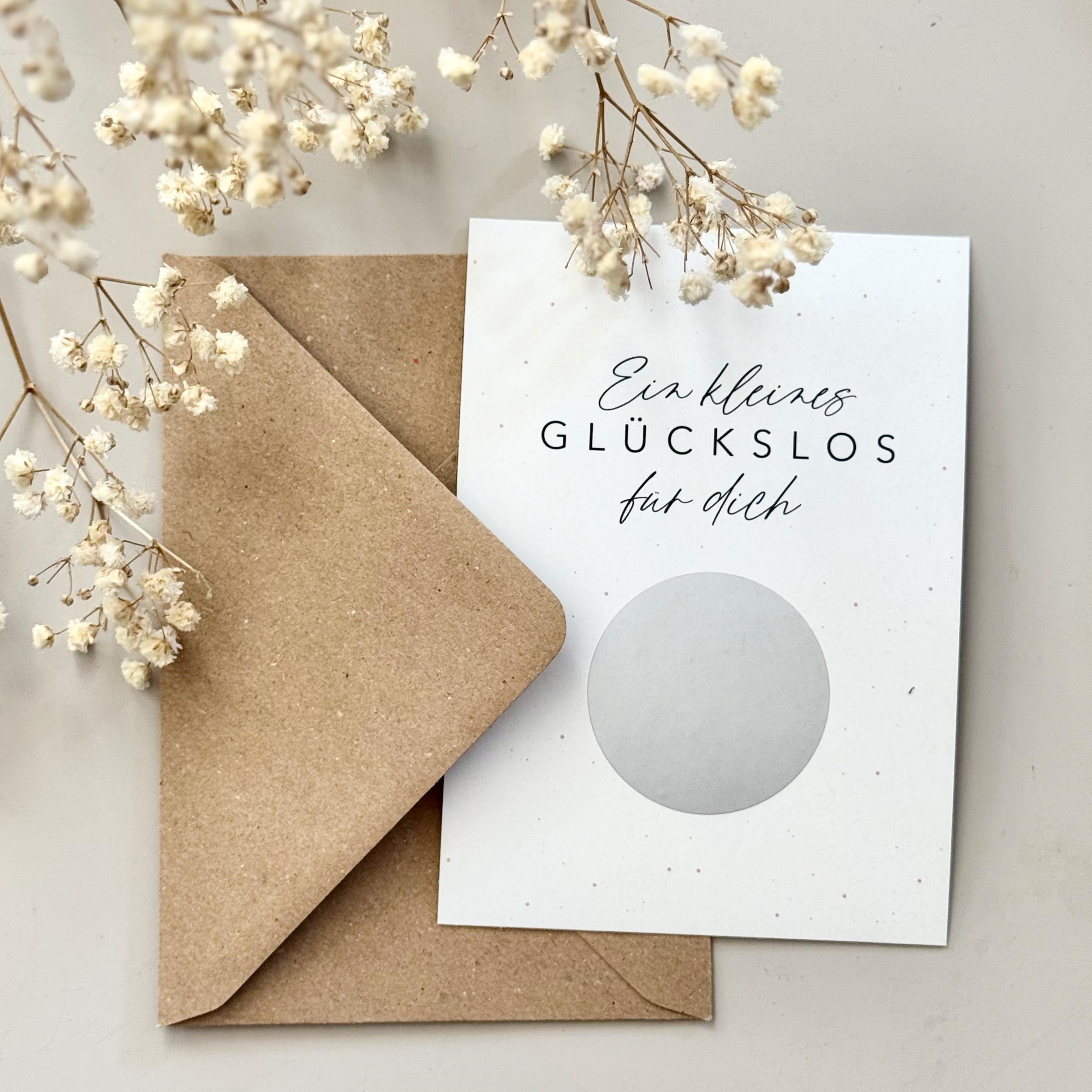 This A6 postcard comes with a scratch-off sticker for you to apply yourself. The message is printed under the scratch-off heart. A matching kraft paper envelope is also included.