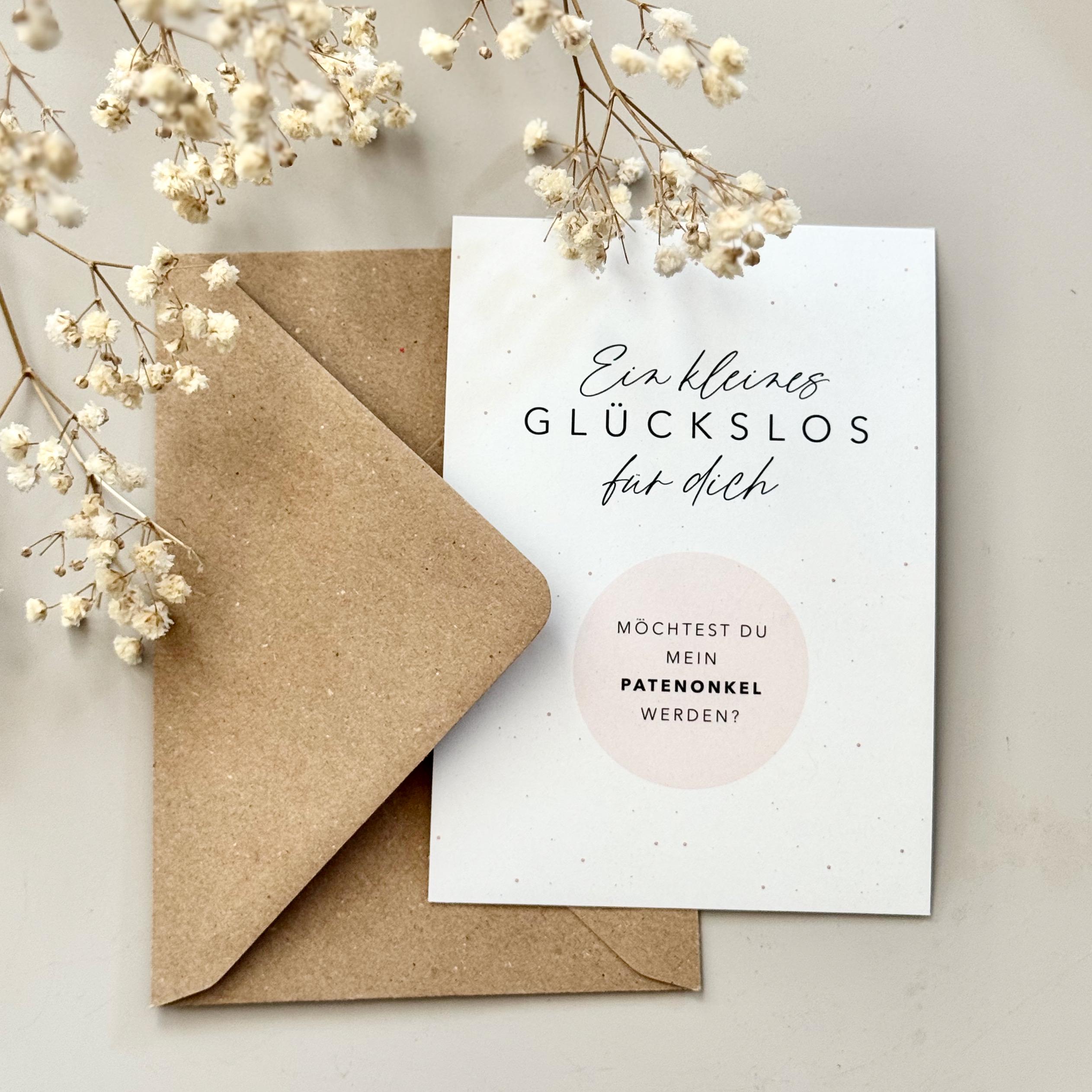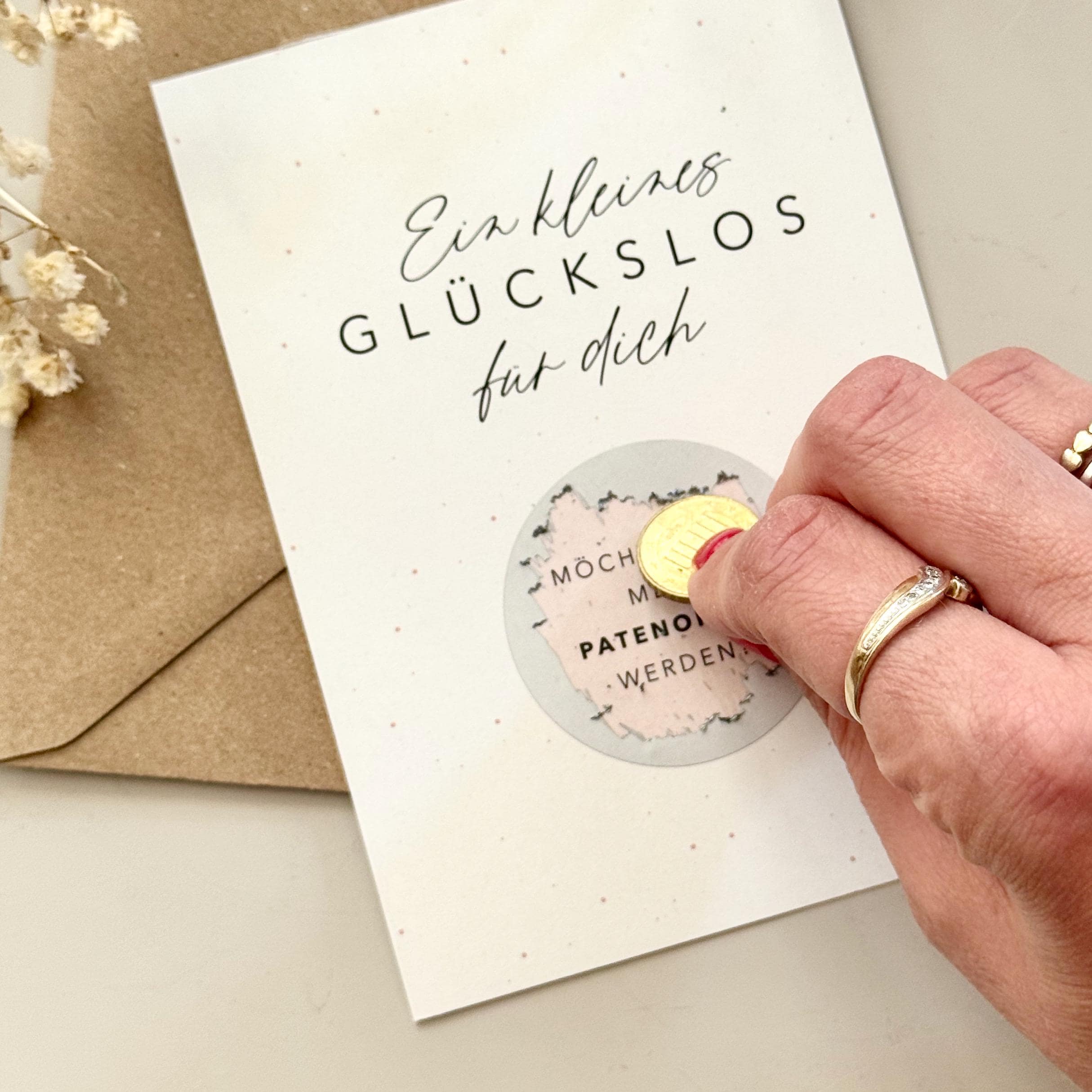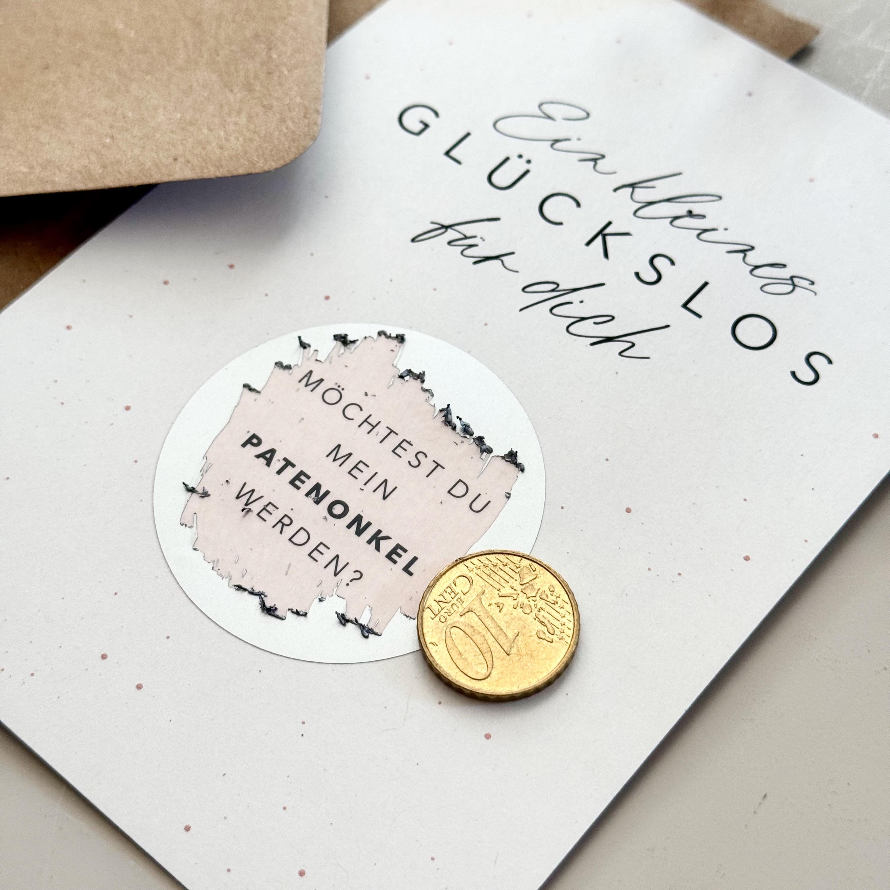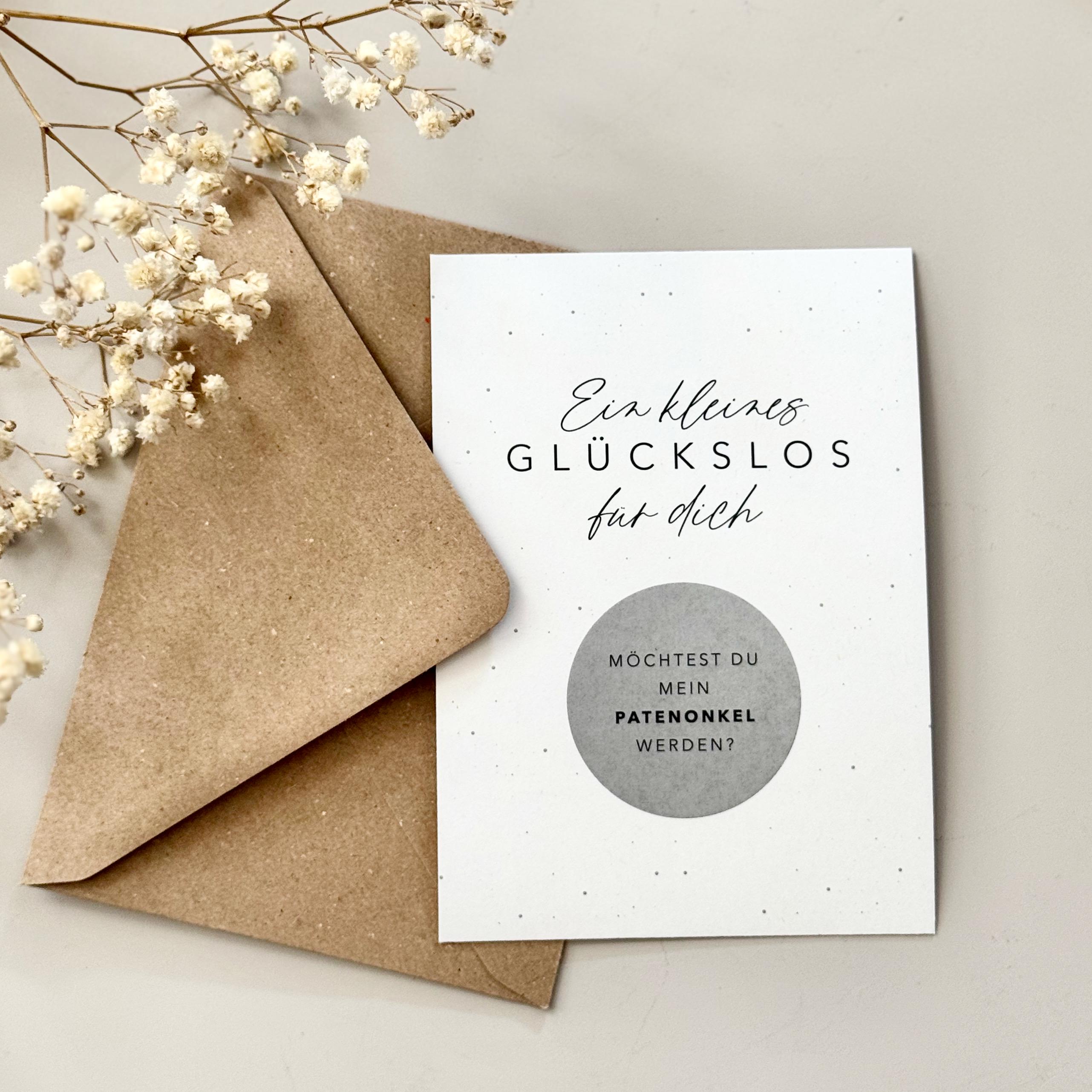 This A6 postcard comes with a scratch-off sticker for you to apply yourself. The message is printed under the scratch-off heart. A matching kraft paper envelope is also included.