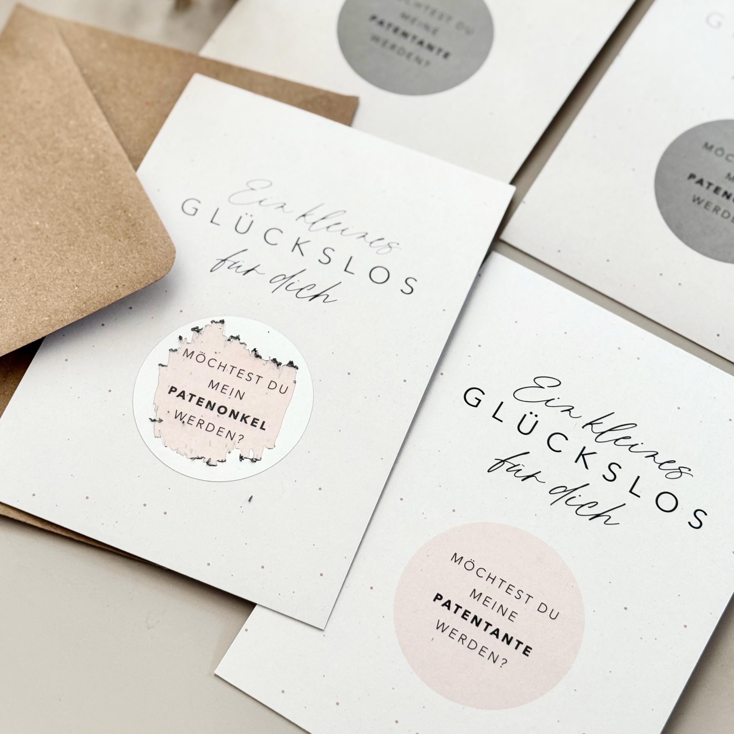 Card: Will you be my godmother? Pink or grey scratch-off card + envelope
